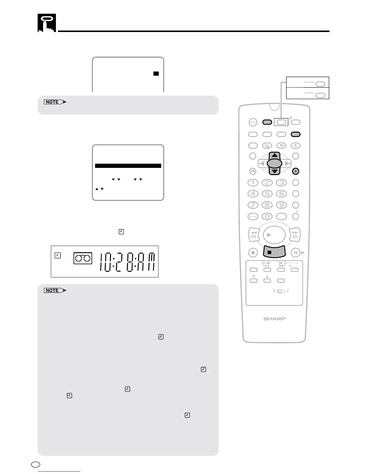 • If TIMER ON/OFF is pressed when there is no cassette loaded, “ ”