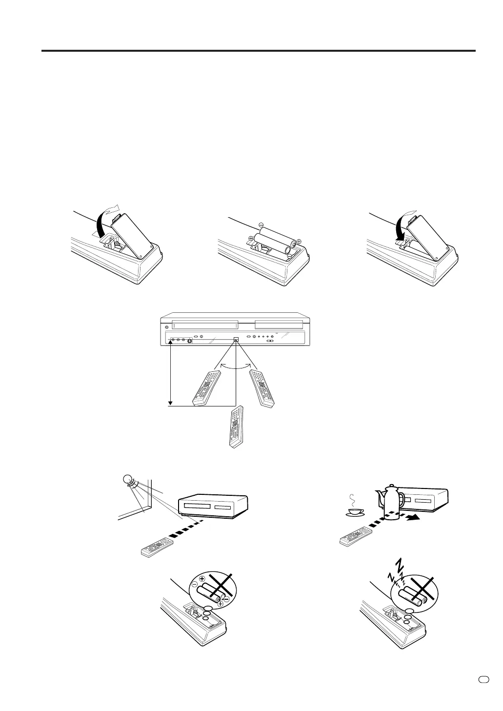 Note: Flat, weak batteries will leak. Corrosive electrolyte will damage the remote control handset.