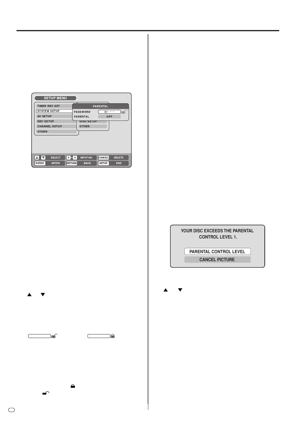 • Select “PARENTAL” from “SYSTEM SETUP”. For the