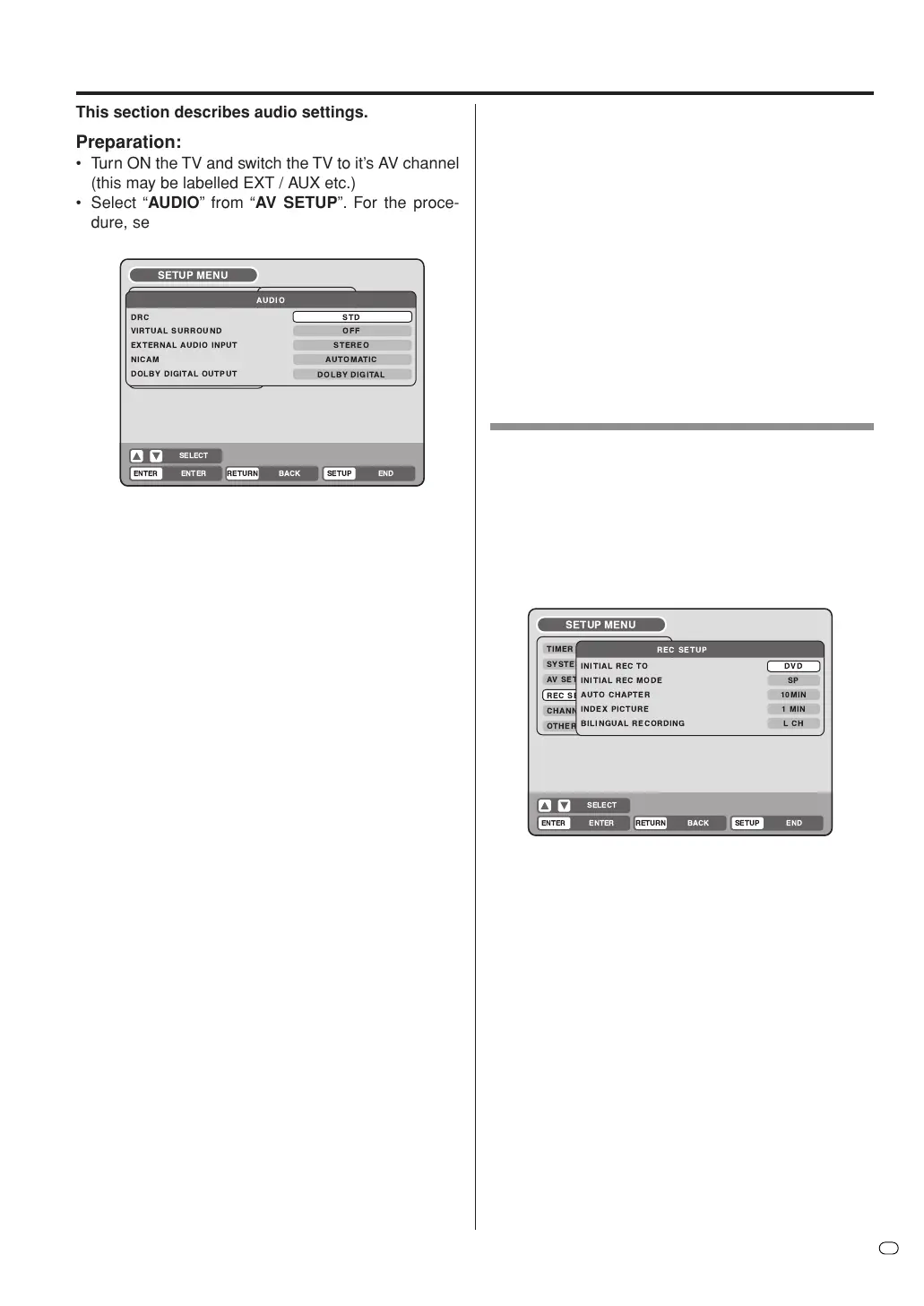 • Select “AUDIO” from “AV SETUP”. For the proce-