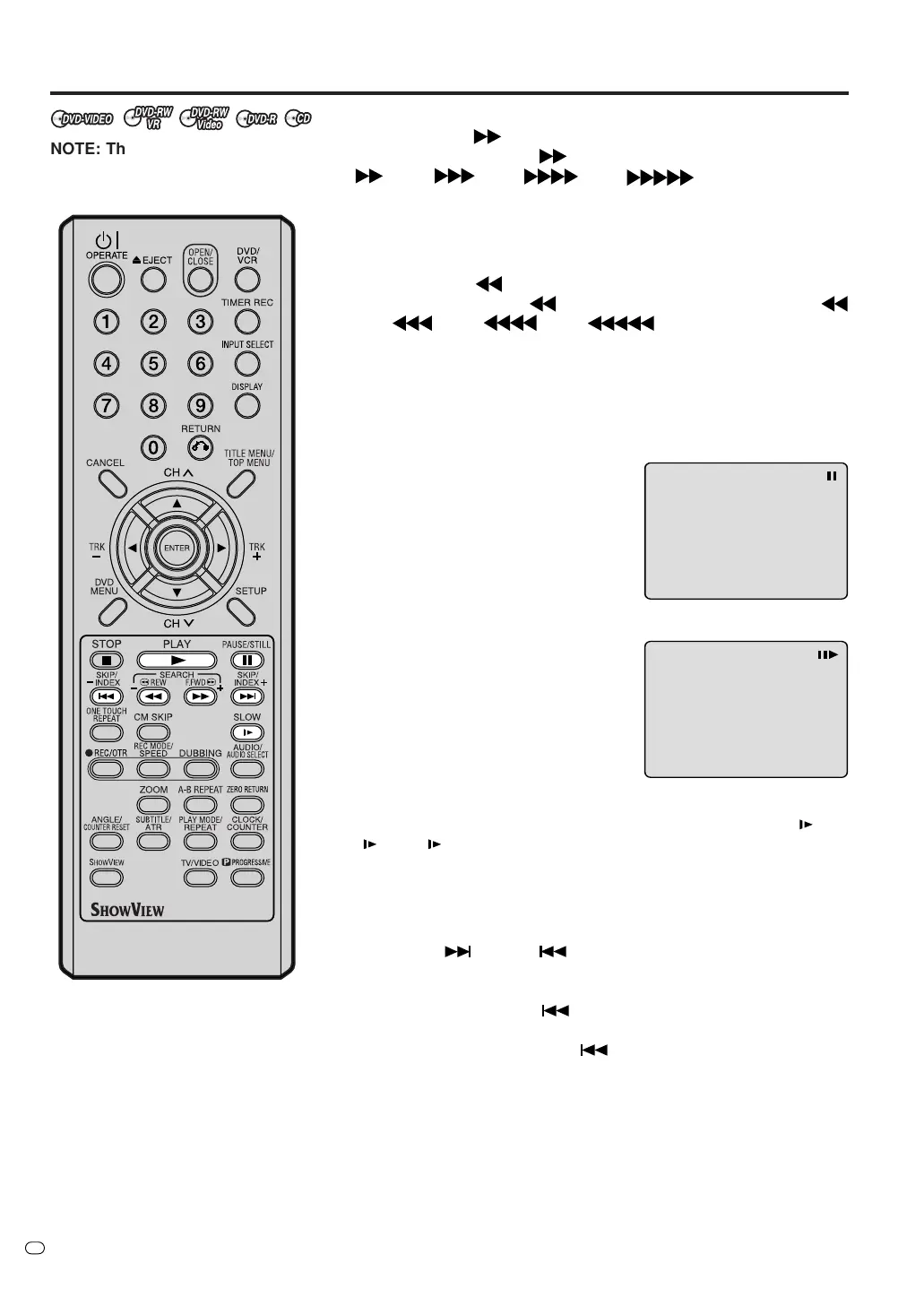 • Fast forward and reverse playback does not work with a MP3/WMA/JPEG-CD.