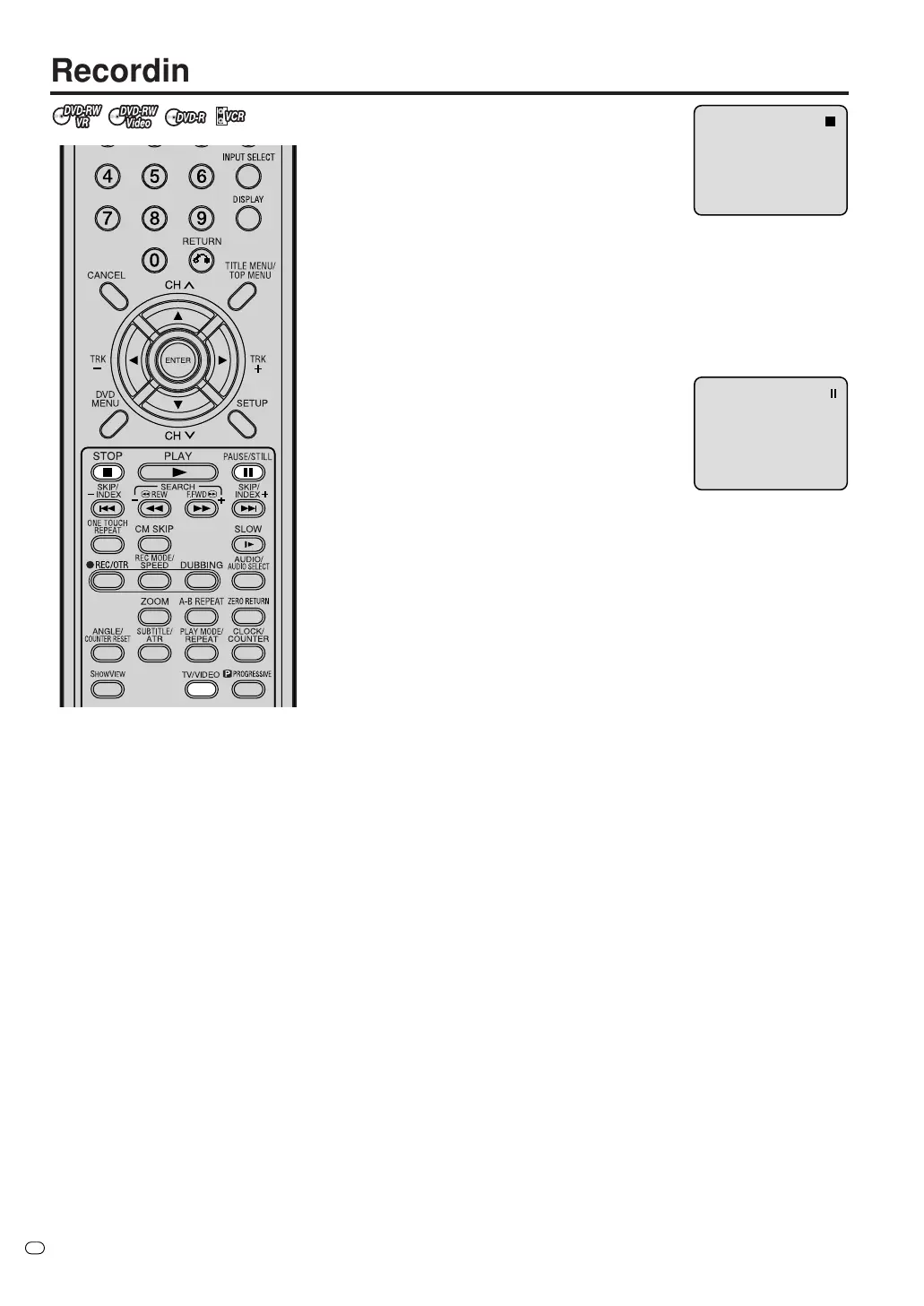 recording channel in the DVD recording pause mode.)