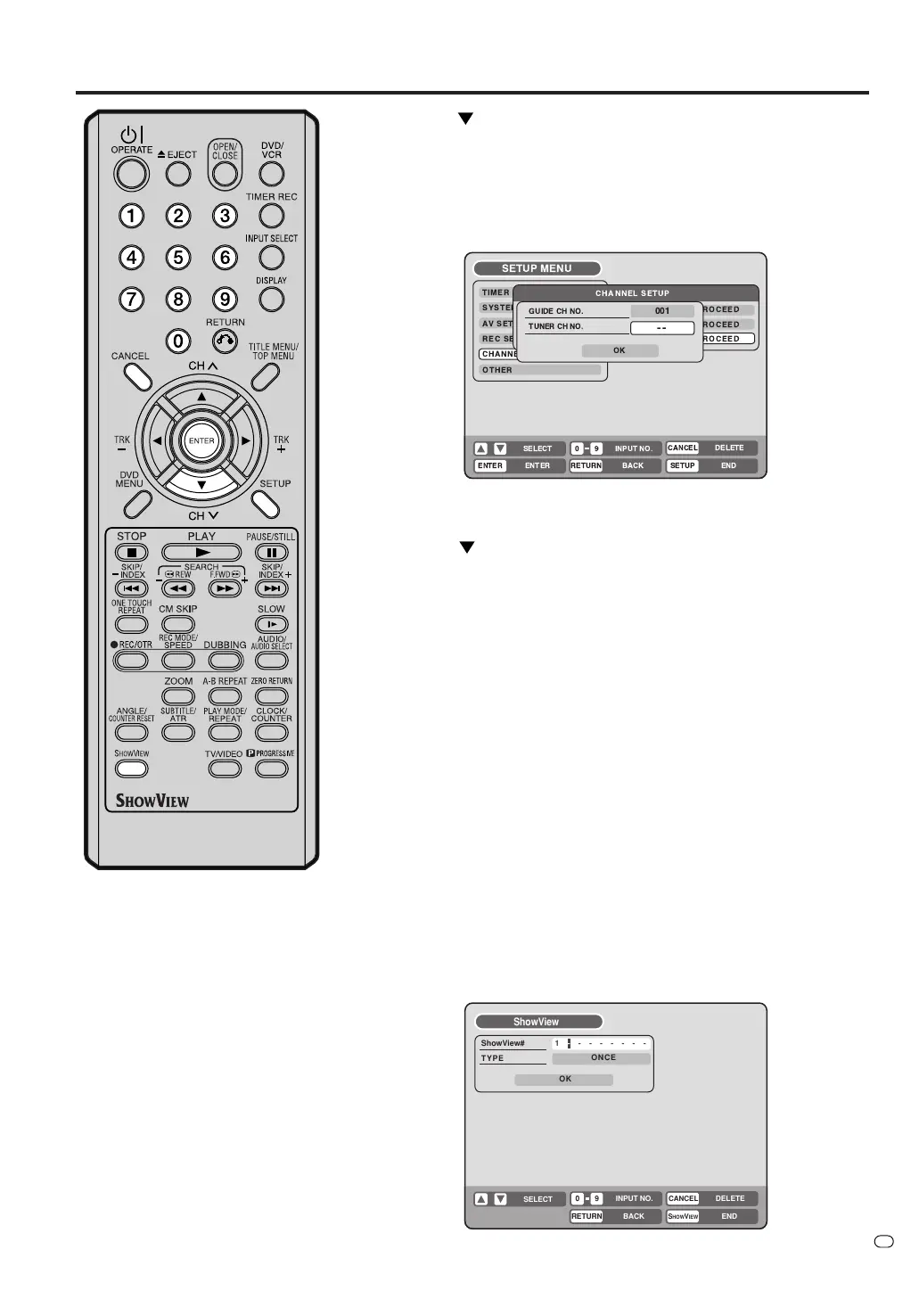 “Checking the channel setup to use the SHOWVIEW system” on page
