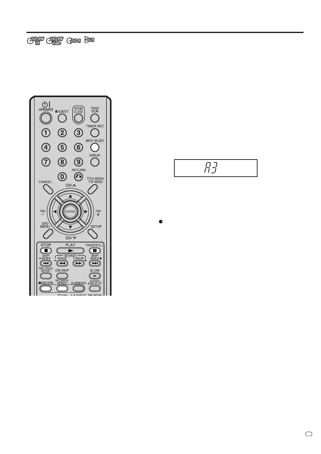 Press INPUT SELECT and set the channel to A3 (A1or A2).