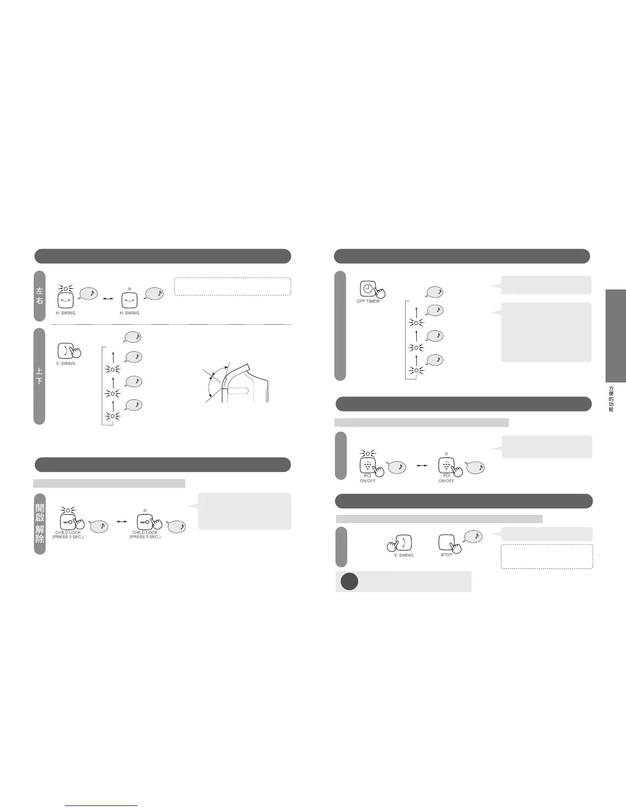 再次同時按上下搖擺鍵和停止鍵 3
