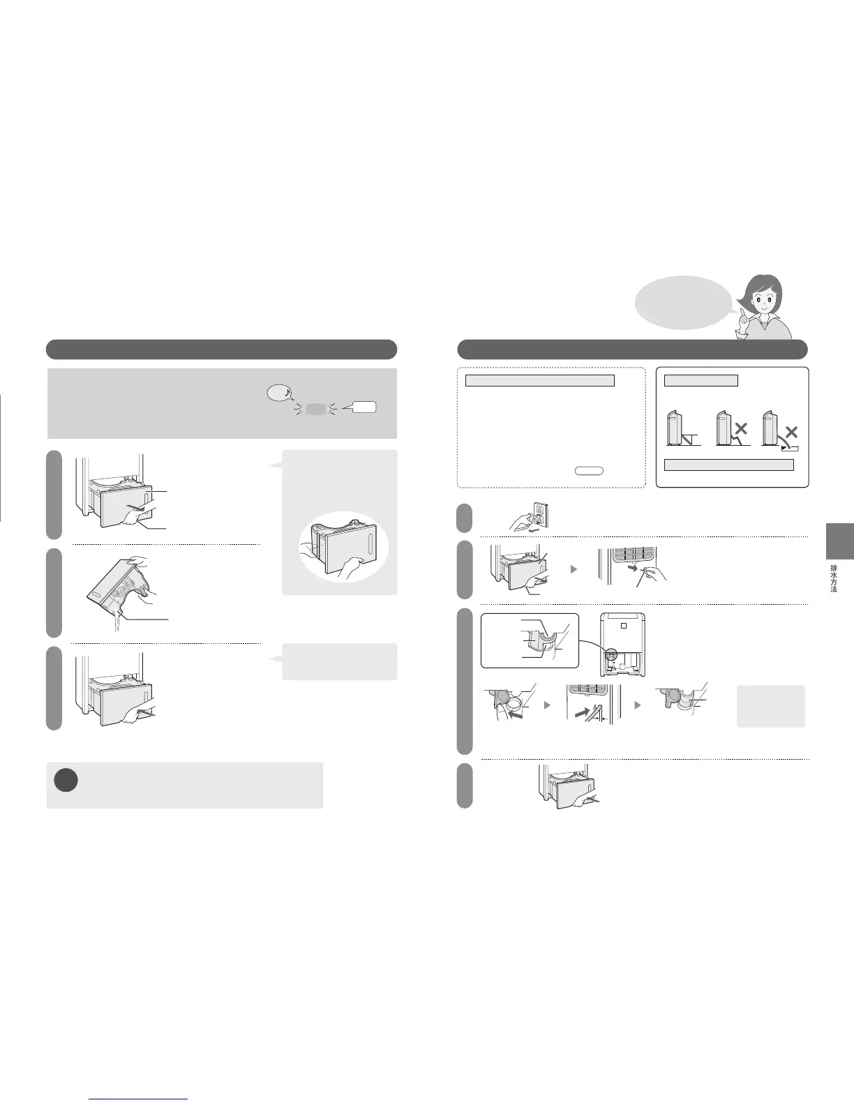 排水後,將儲水箱重新裝入主機,“水滿指示燈”(紅)將會熄滅,