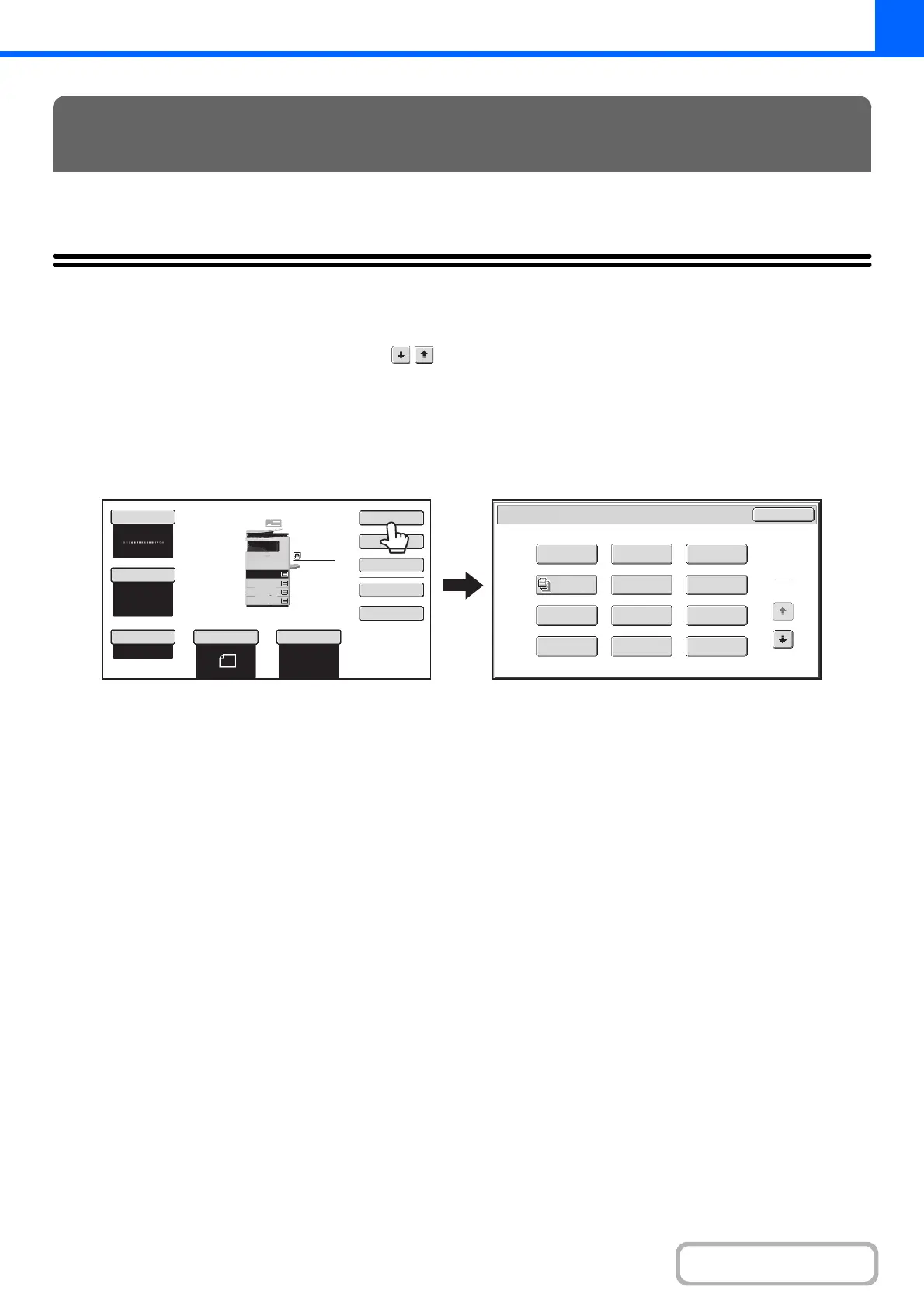 modes menu consists of two screens. Touch the keys to move between the screens. After selecting special