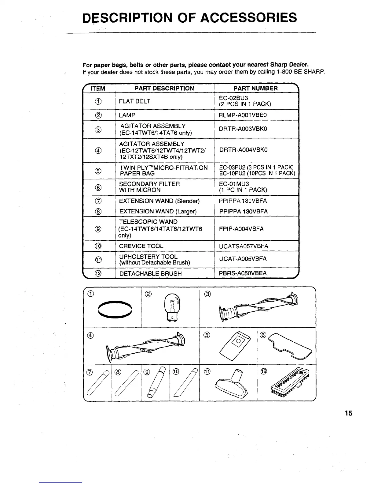 If your dealer does not stock these parts, you may order them by calling 1-800-BE-SHARP°