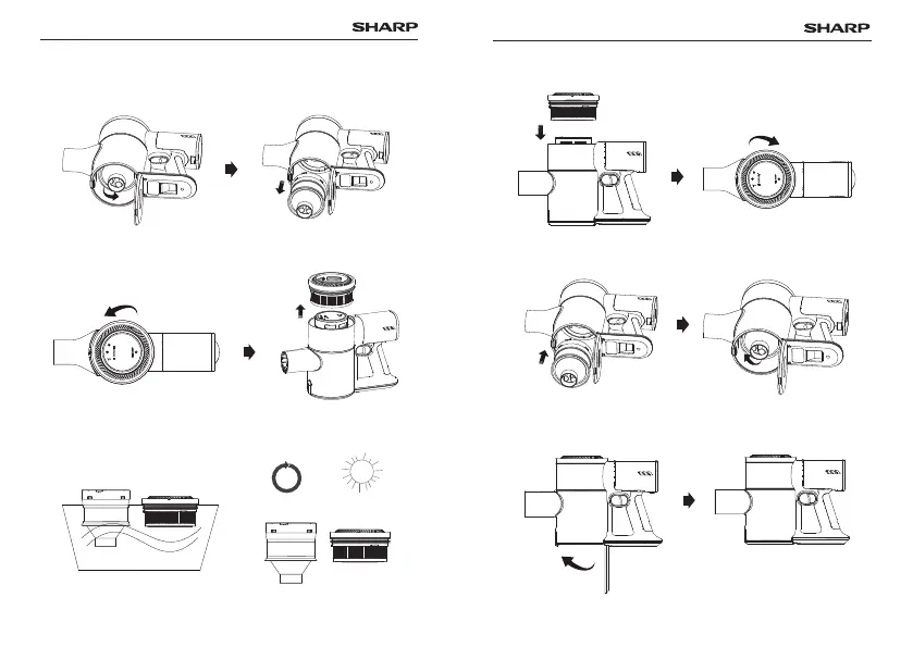 8)Rotate the bottom cover of the dust bucket as shown in the figure, and hear a "click" to