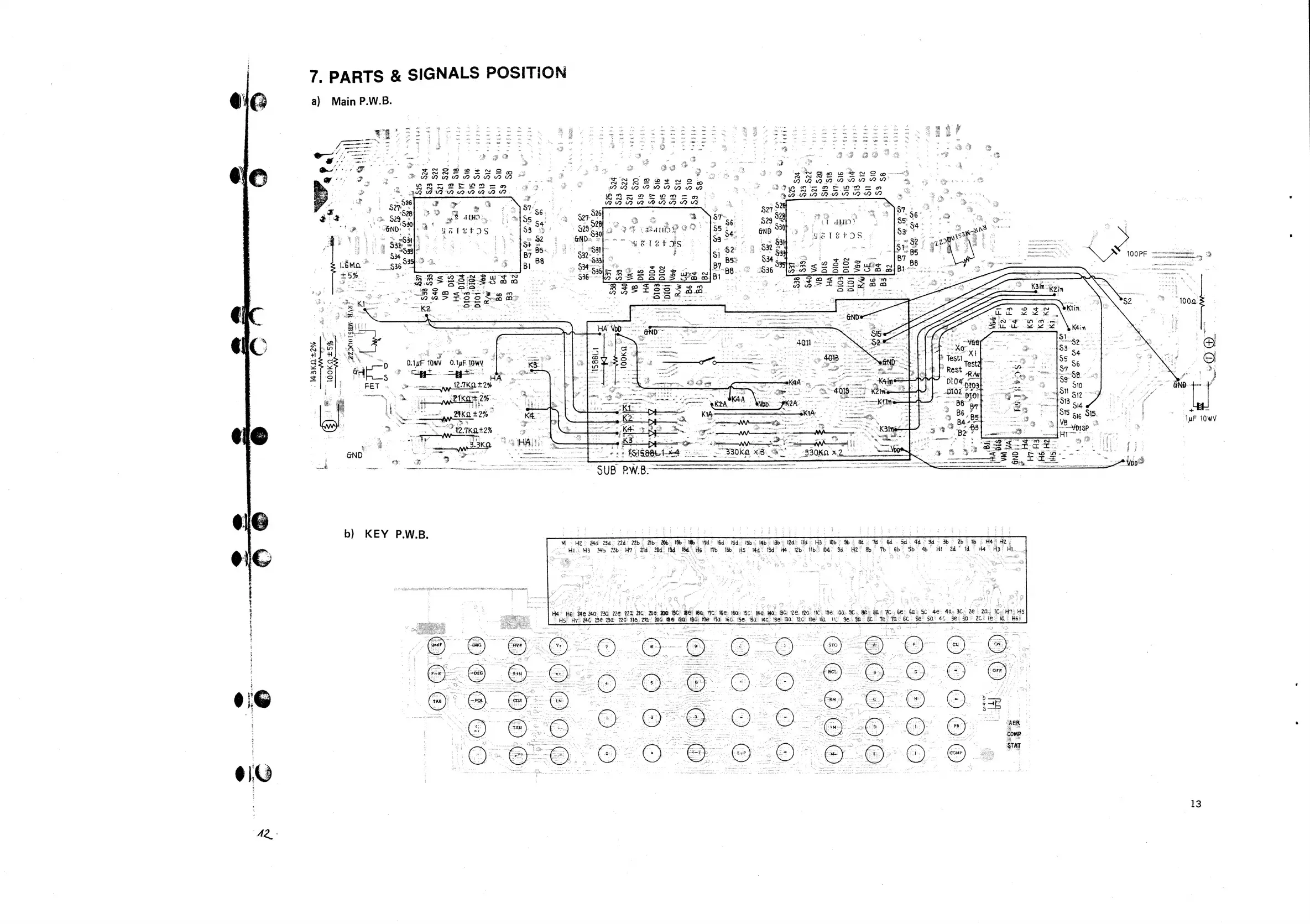 Sharp EL-5100S - PARTS AND SIGNALS POSITION; Main P.W.B. Layout; Key P.W.B. Layout