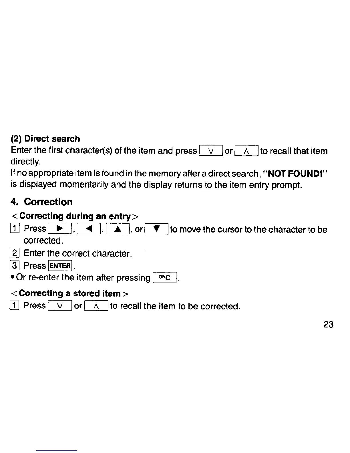Sharp EL-6081 - Direct Search; Correcting During an Entry; Correcting a Stored Item