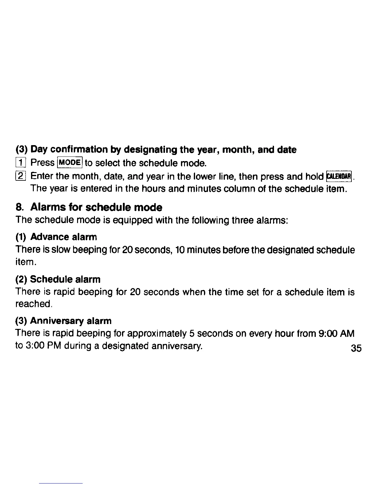 Sharp EL-6081 - Alarms for Schedule Mode; Advance Alarm; Schedule Alarm; Anniversary Alarm