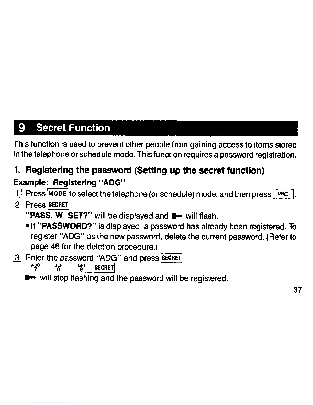 Sharp EL-6081 - Secret Function; Registering the Password