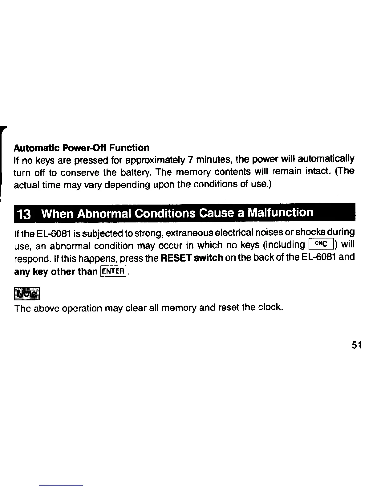 Sharp EL-6081 - When Abnormal Conditions Cause a Malfunction; Automatic Power-Off Function