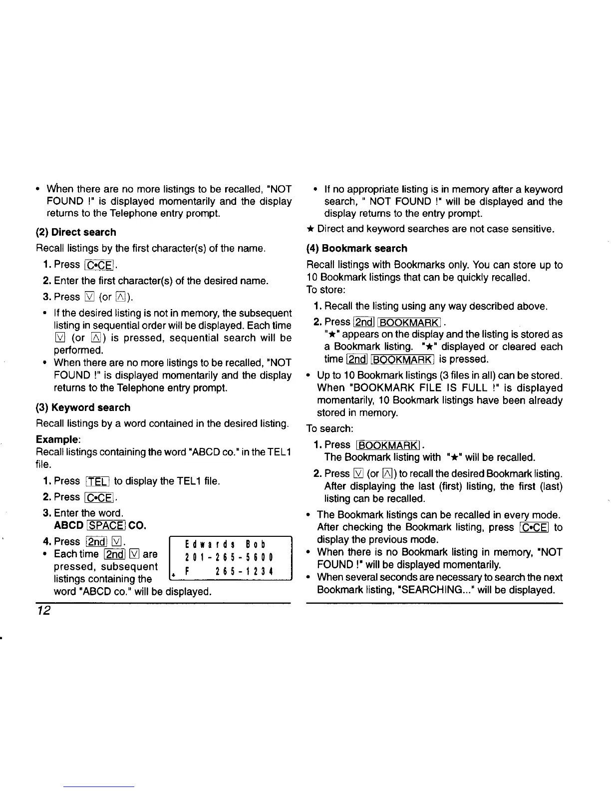 Sharp EL-6560 - Direct Search; Keyword Search; Bookmark Search