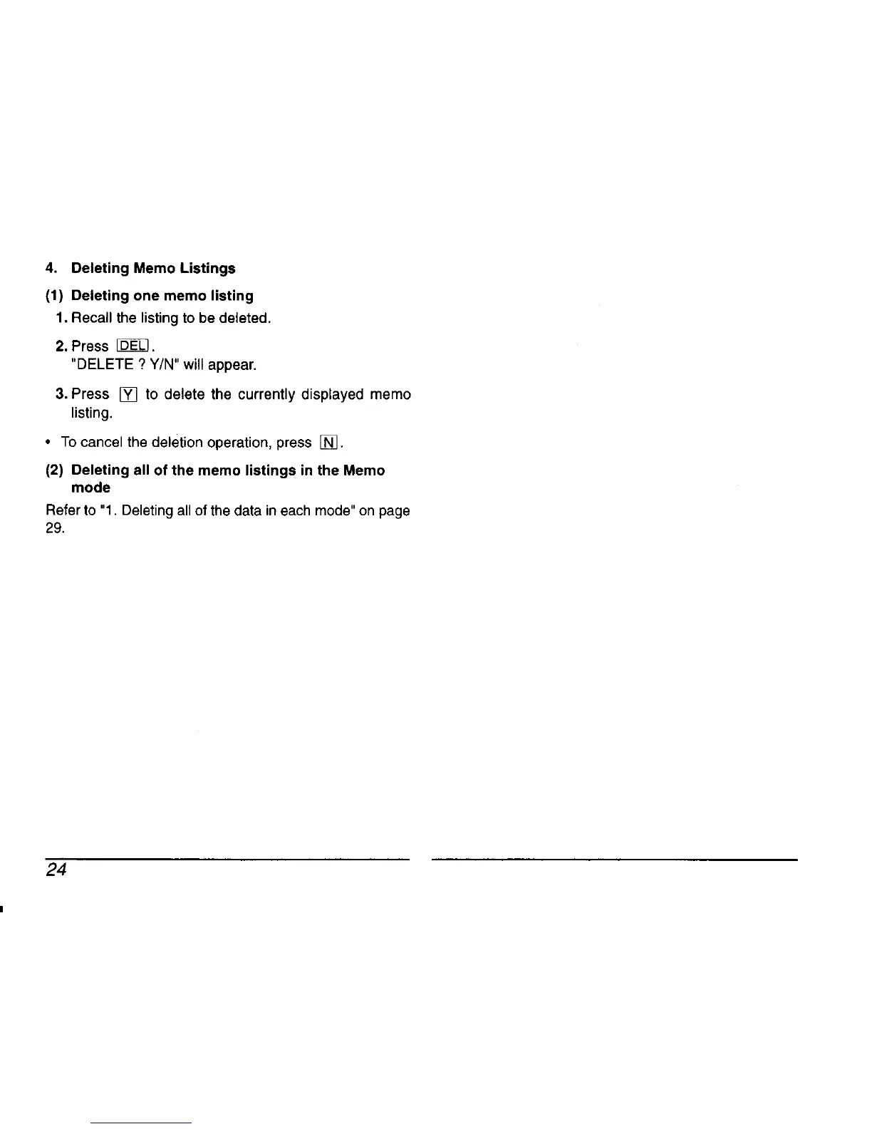 Sharp EL-6560 - Deleting Memo Listings; Deleting All of the Memo Listings in the Memo Mode