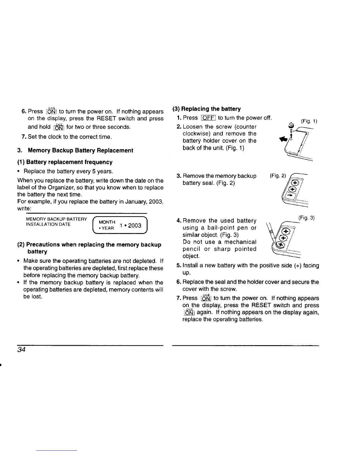 Sharp EL-6560 - Memory Backup Battery Replacement; Battery Replacement Frequency