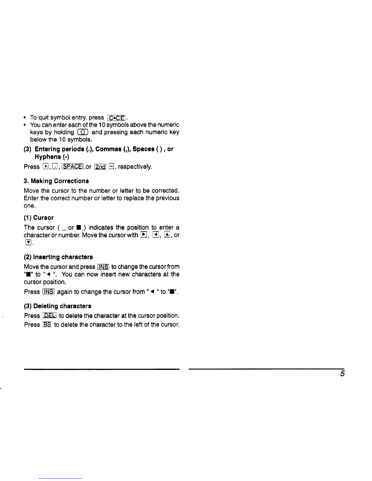 Sharp EL-6560 - Making Corrections; Cursor; Inserting Characters; Deleting Characters