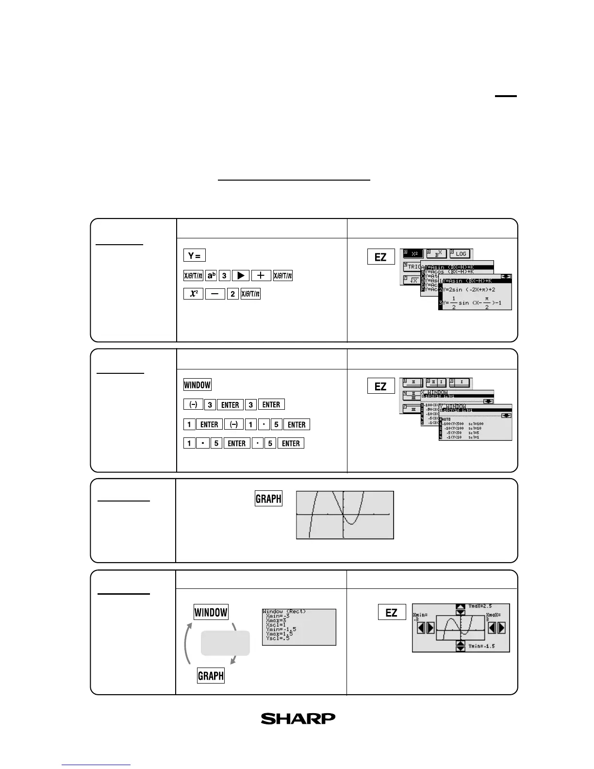Following outlines graphing procedures and indicates the steps where Sharp's unique functions can