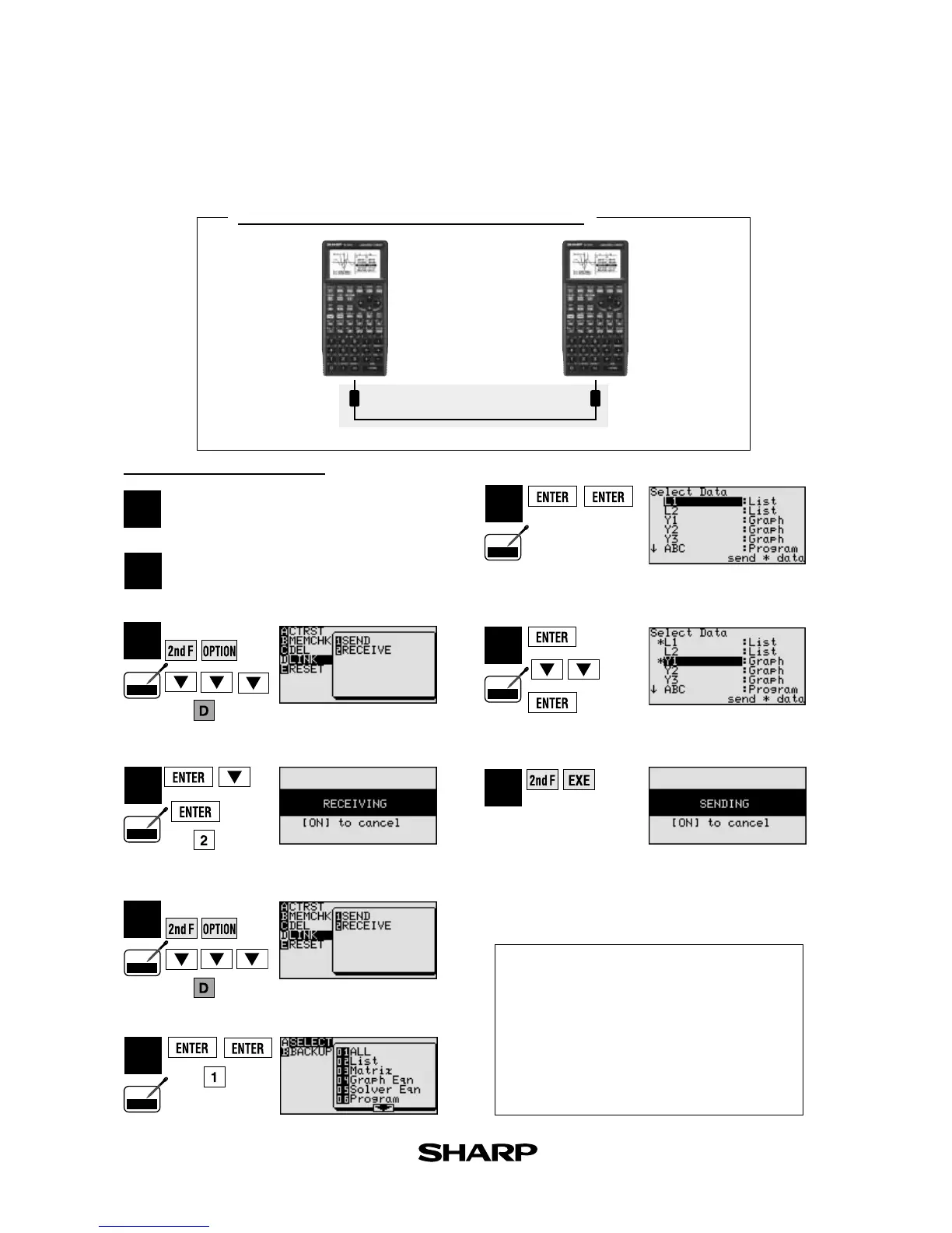 Transfer data between two EL-9650/9600c calculators using the communication cable (CE-450L).