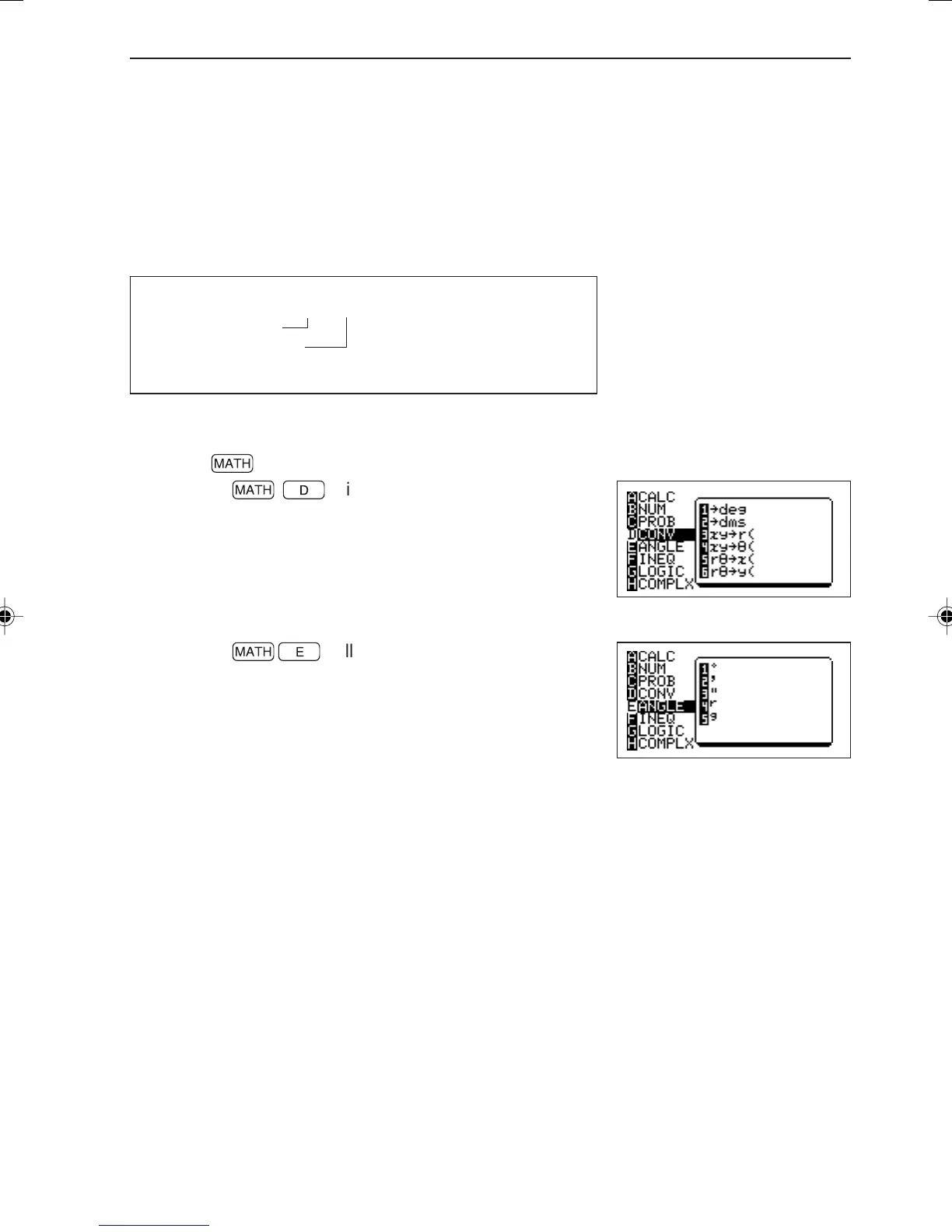 • To convert, specify [1 →deg] or [2 →dms] of the main menu’s [D CONV] of the
