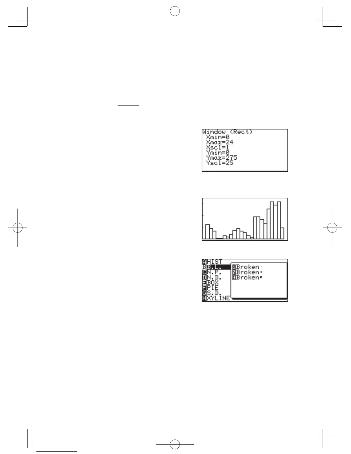 PLOT:on,DATA:X,ListX:L1,andFreq:L3.