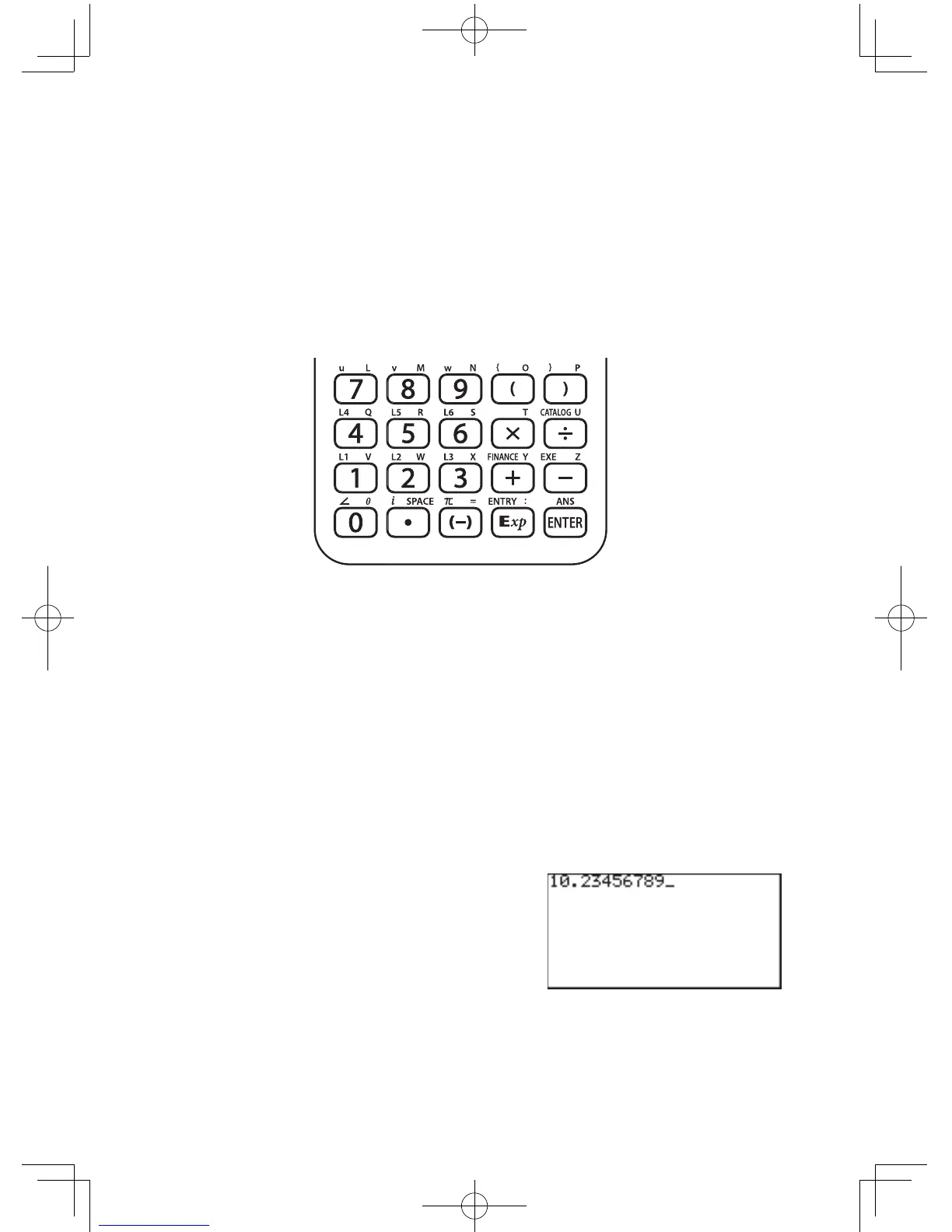The standard calculation keys, located at the bottom four rows of the keyboard, enable