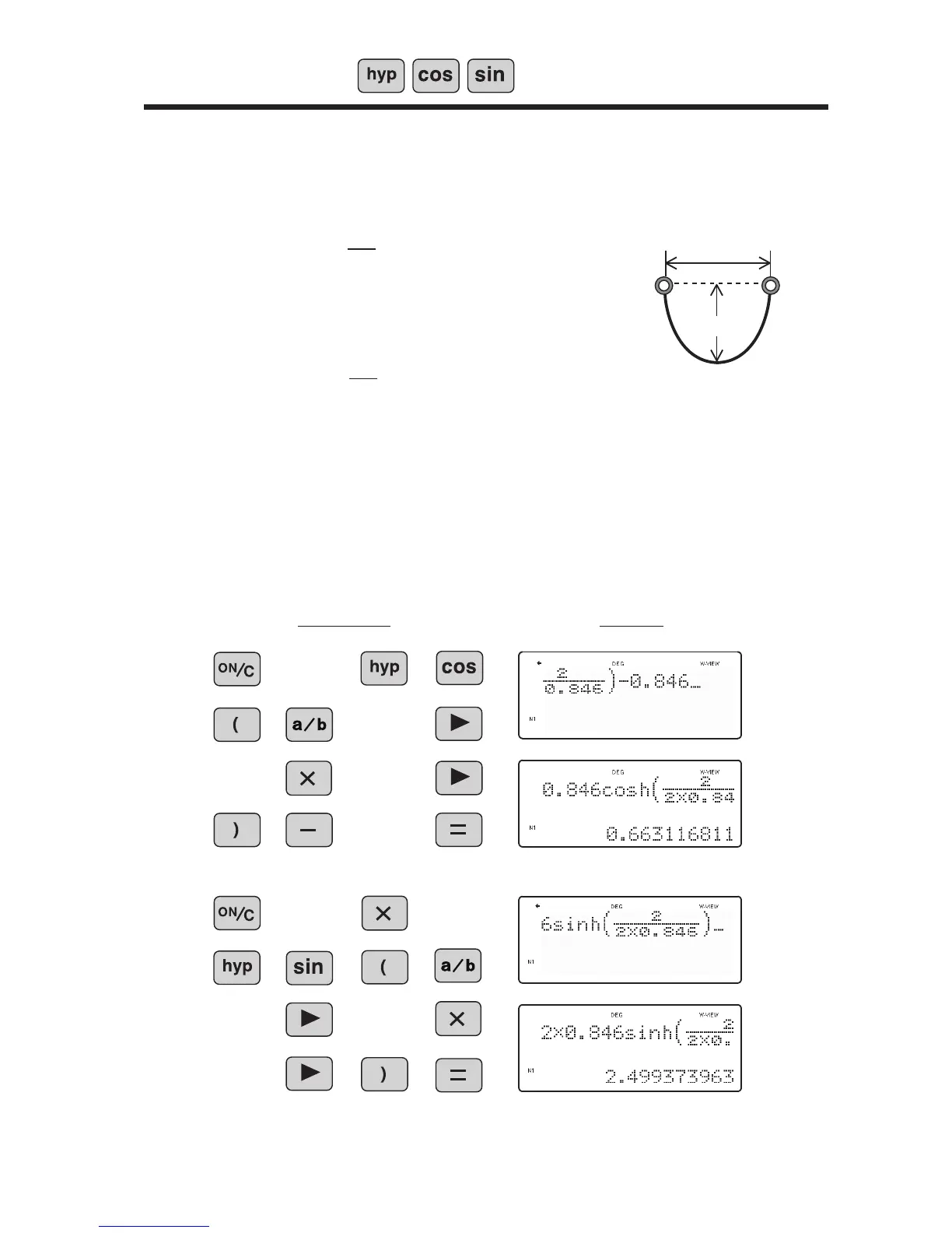 and the sag D of the rope can be expressed using a hyperbolic function.