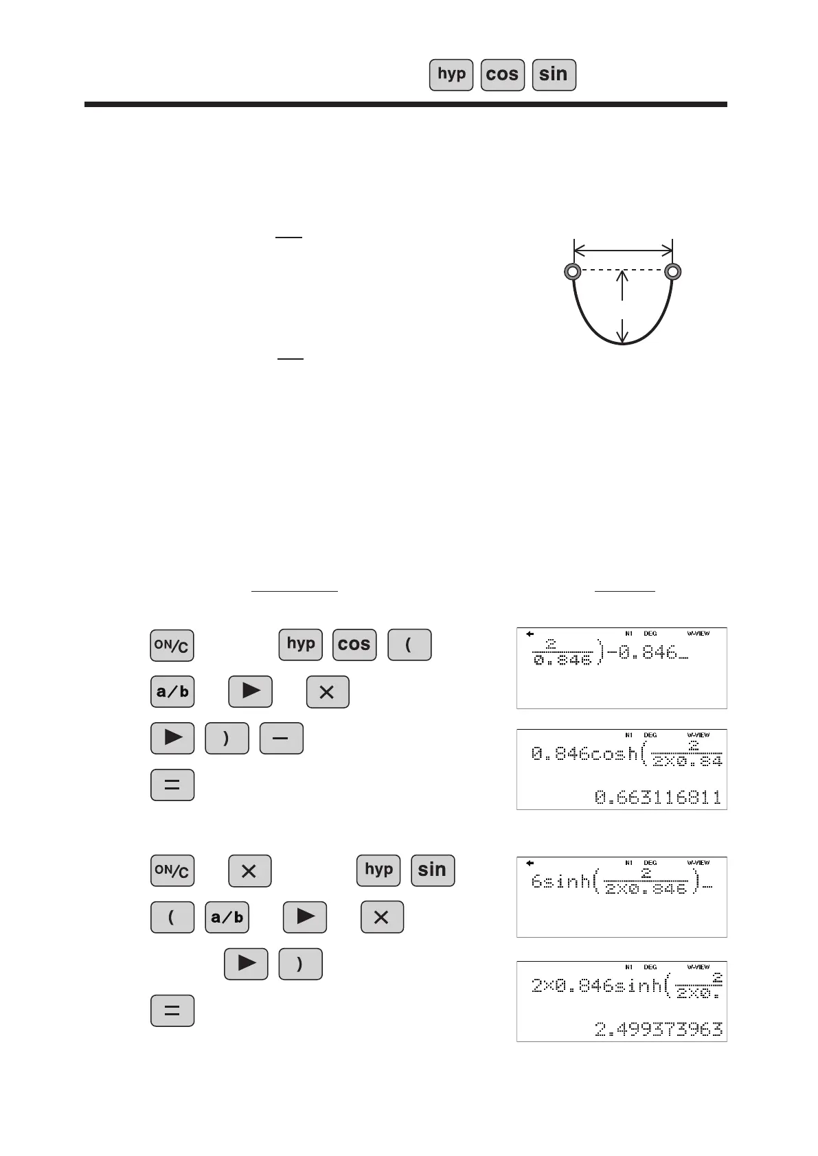 and the sag D of the rope can be expressed using a hyperbolic function.