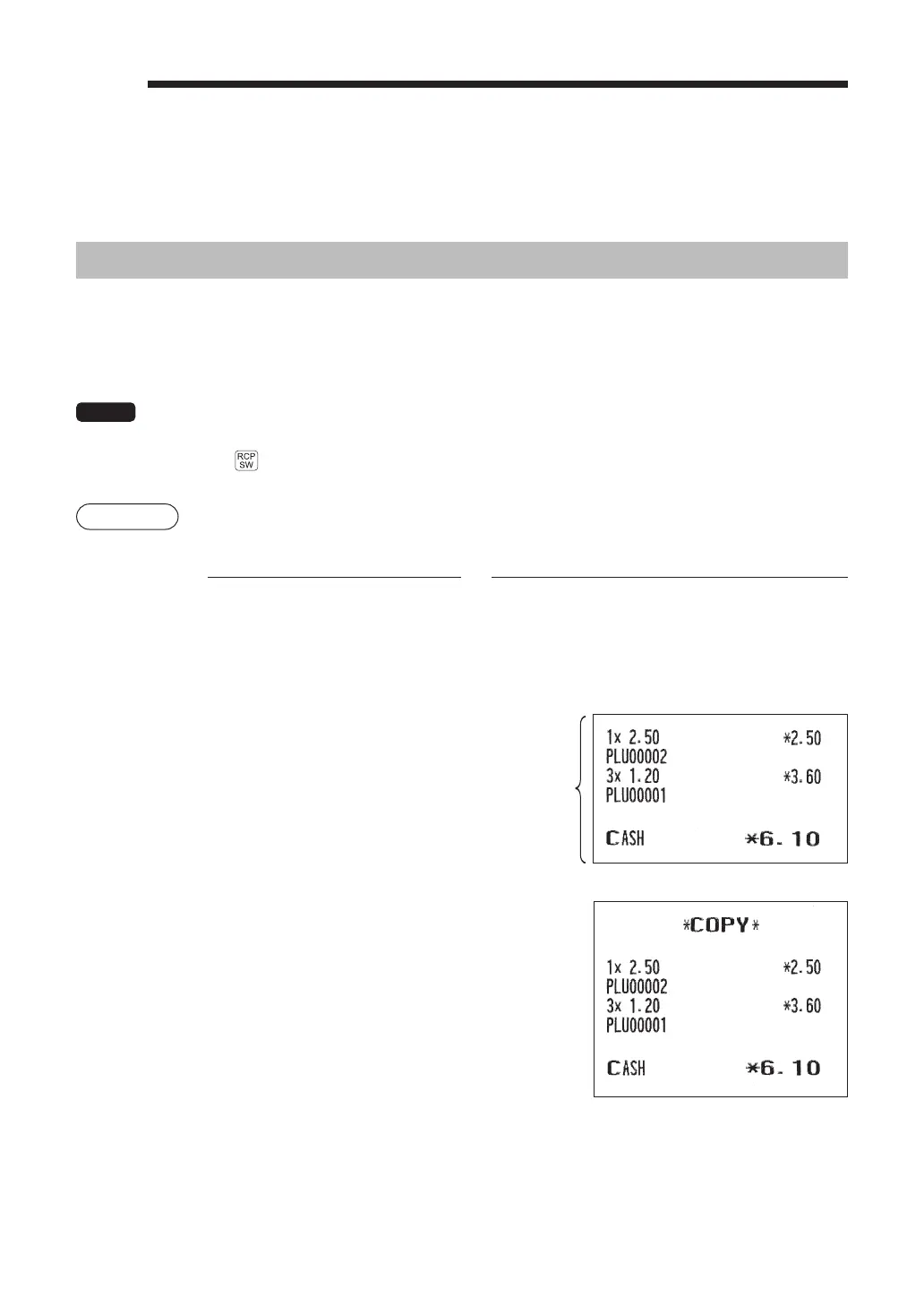 Printing a receipt after making the entries shown below with the receipt ON-OFF function
