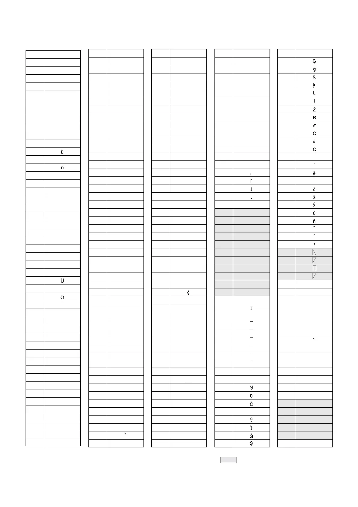 <Character Code Table for text programming> Printer