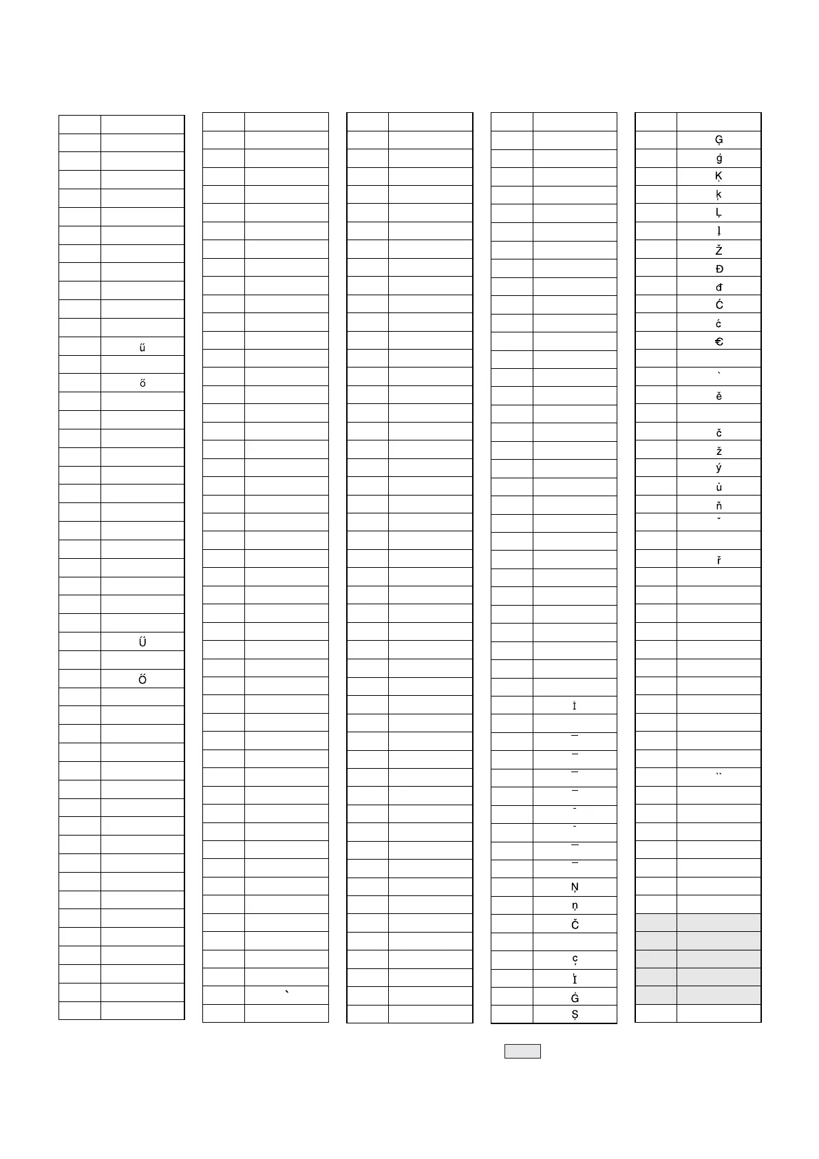 <Character Code Table for text programming> Display