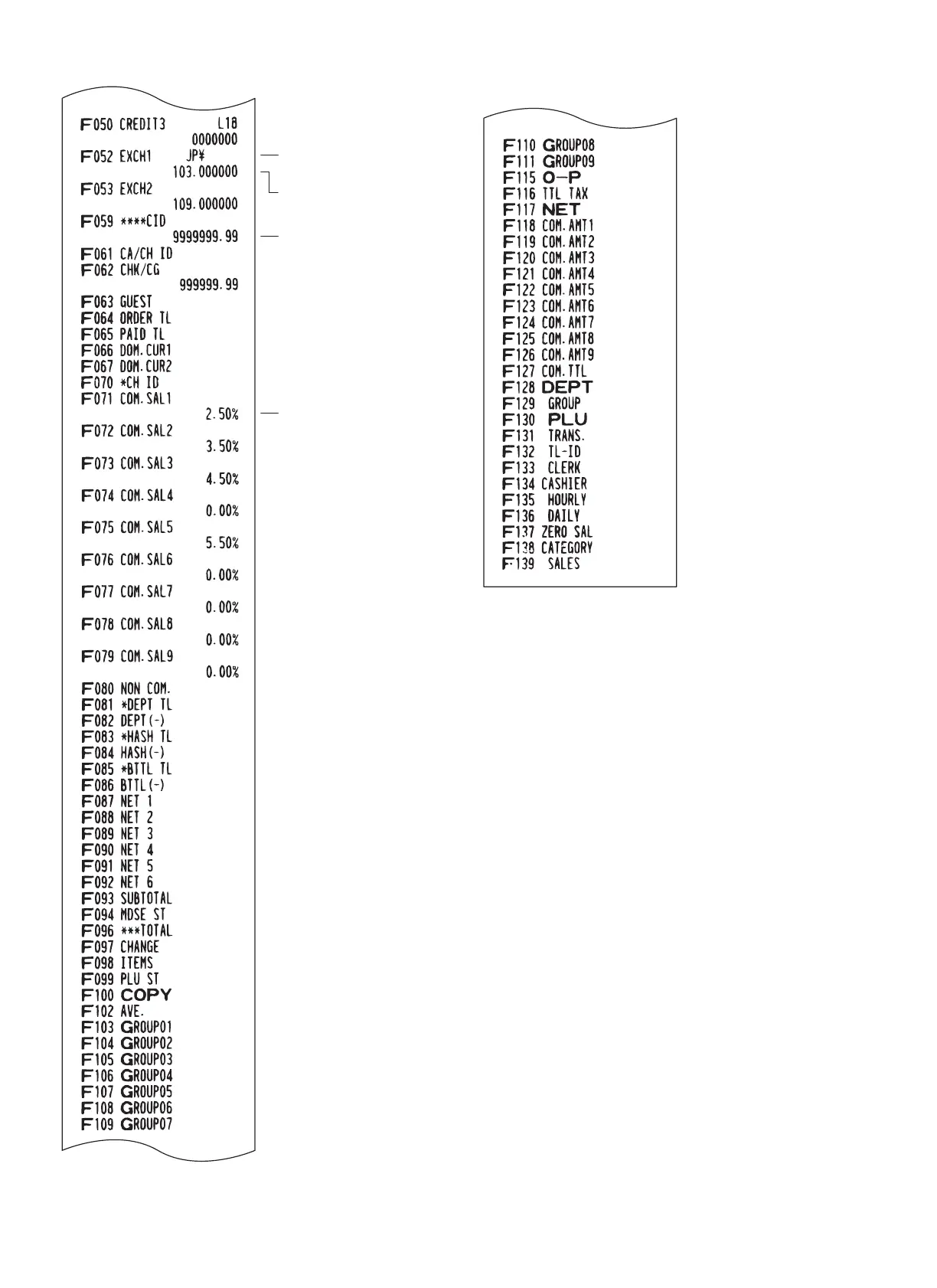 Function No./Text/Currency