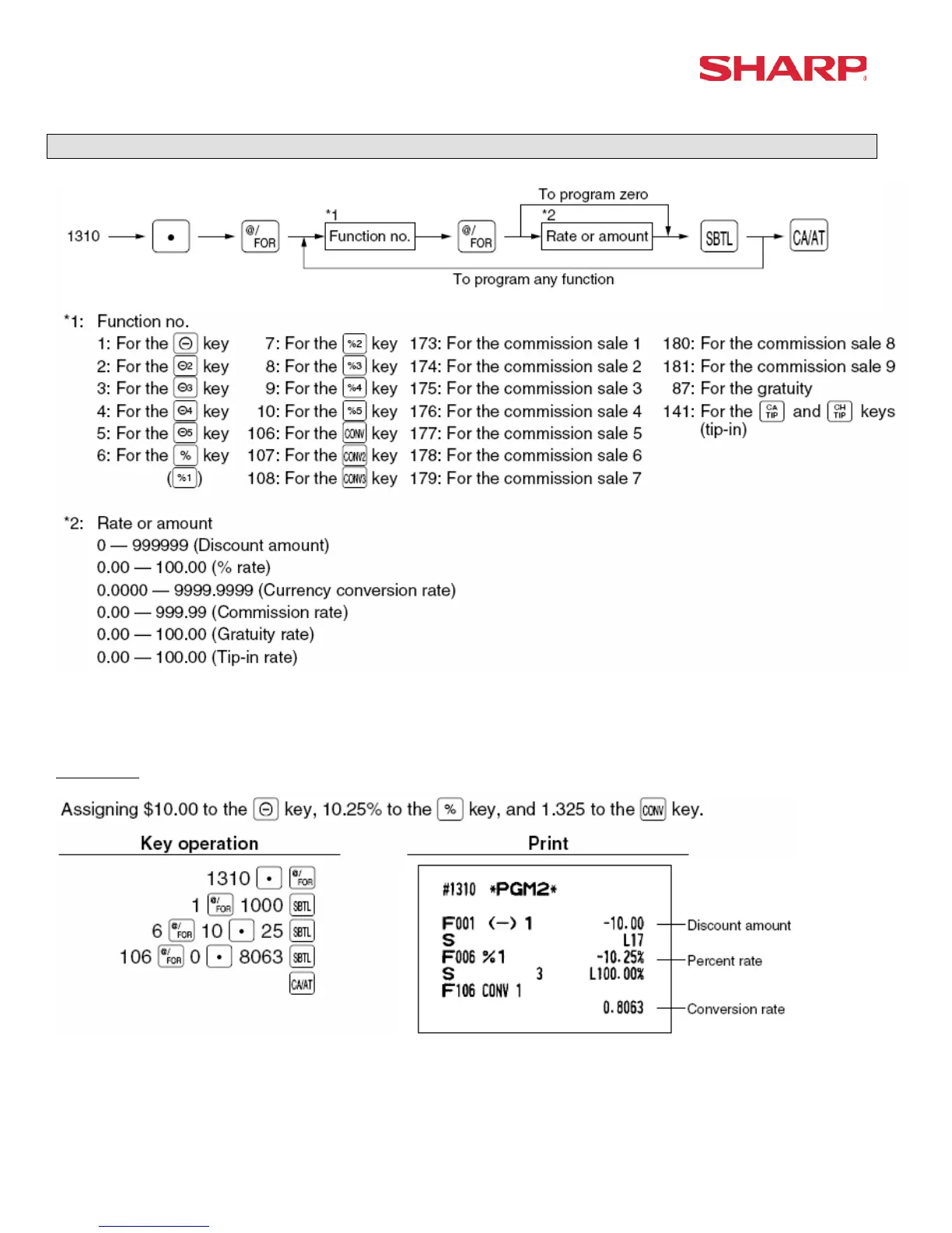 Note: You must use the decimal point key when setting percentage rates and/or prices.