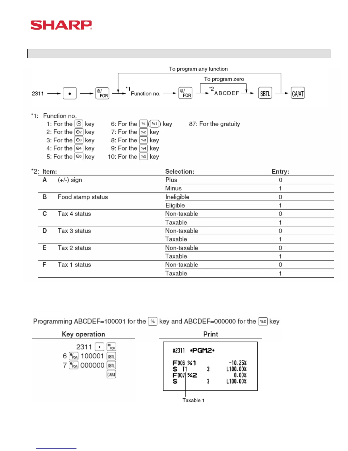 Note: Tax 4 is prohibited if you use the food stamp function.