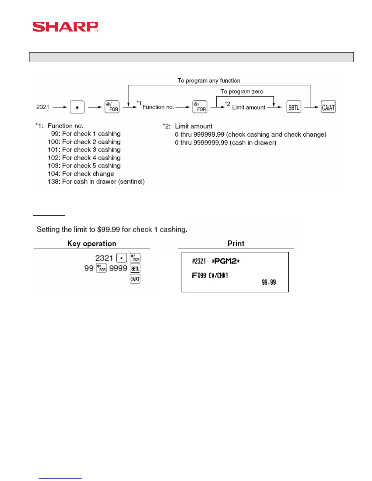 You can program the upper limit amounts for check cashing, check change, and cash in drawer.