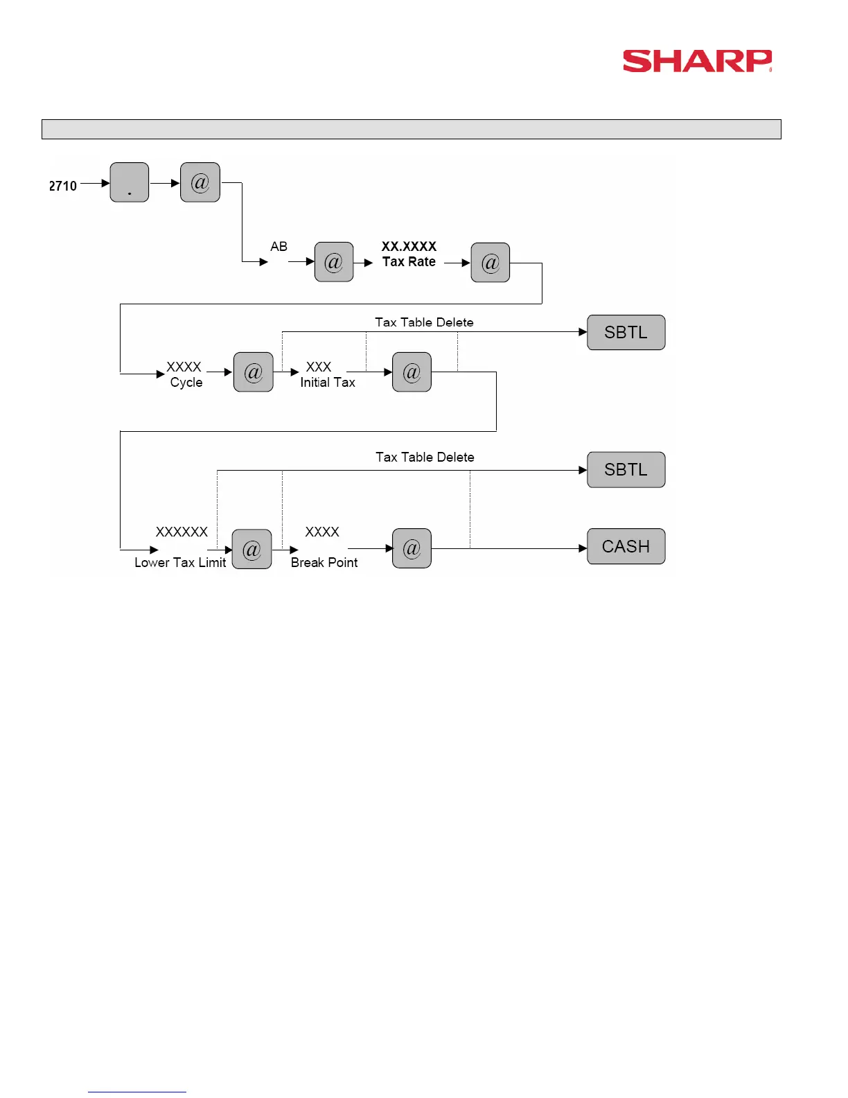 Depression of the [SBTL] key as shown above will result in the deletion of the Tax Table