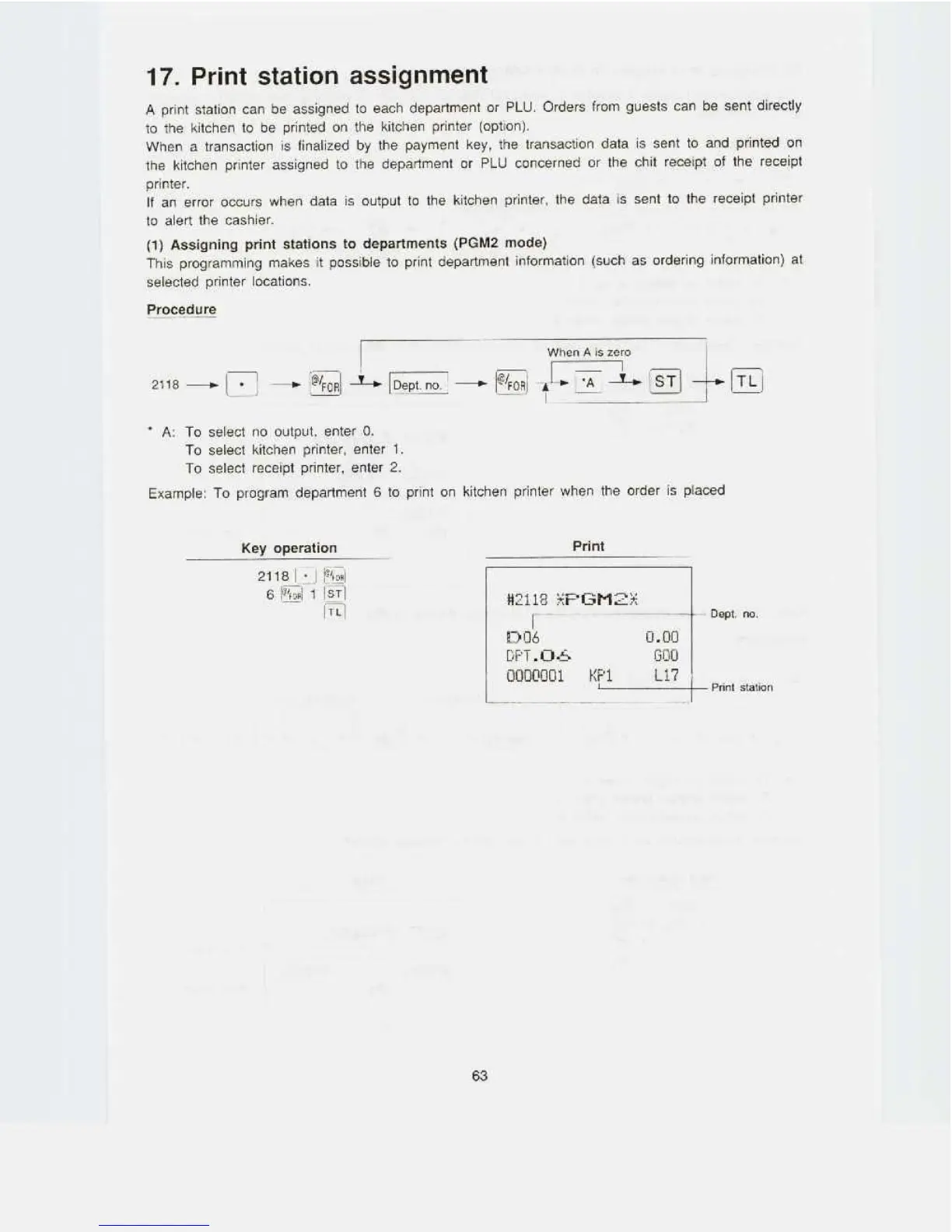Sharp ER-A550S - 17. Print station assignment; (2) Assigning print stations to PLUs (PGM2 mode); PLU range