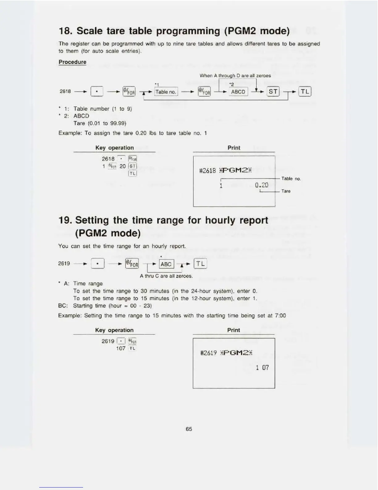 Sharp ER-A550S - 19. Setting the time range for hourly report (PGM2 mode); A: Time range; BC: Starting time (hour - 00 - 23)