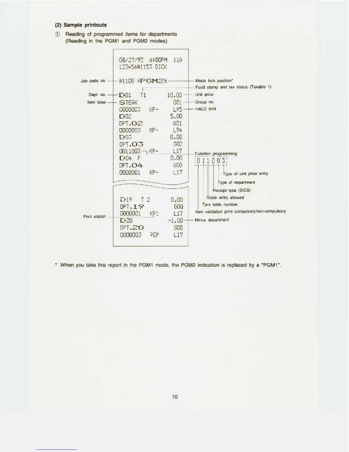 Sharp ER-A550S - (2) Sample printouts; Reading of programmed items for departments (Reading in the PGM1 and PGM2 modes)