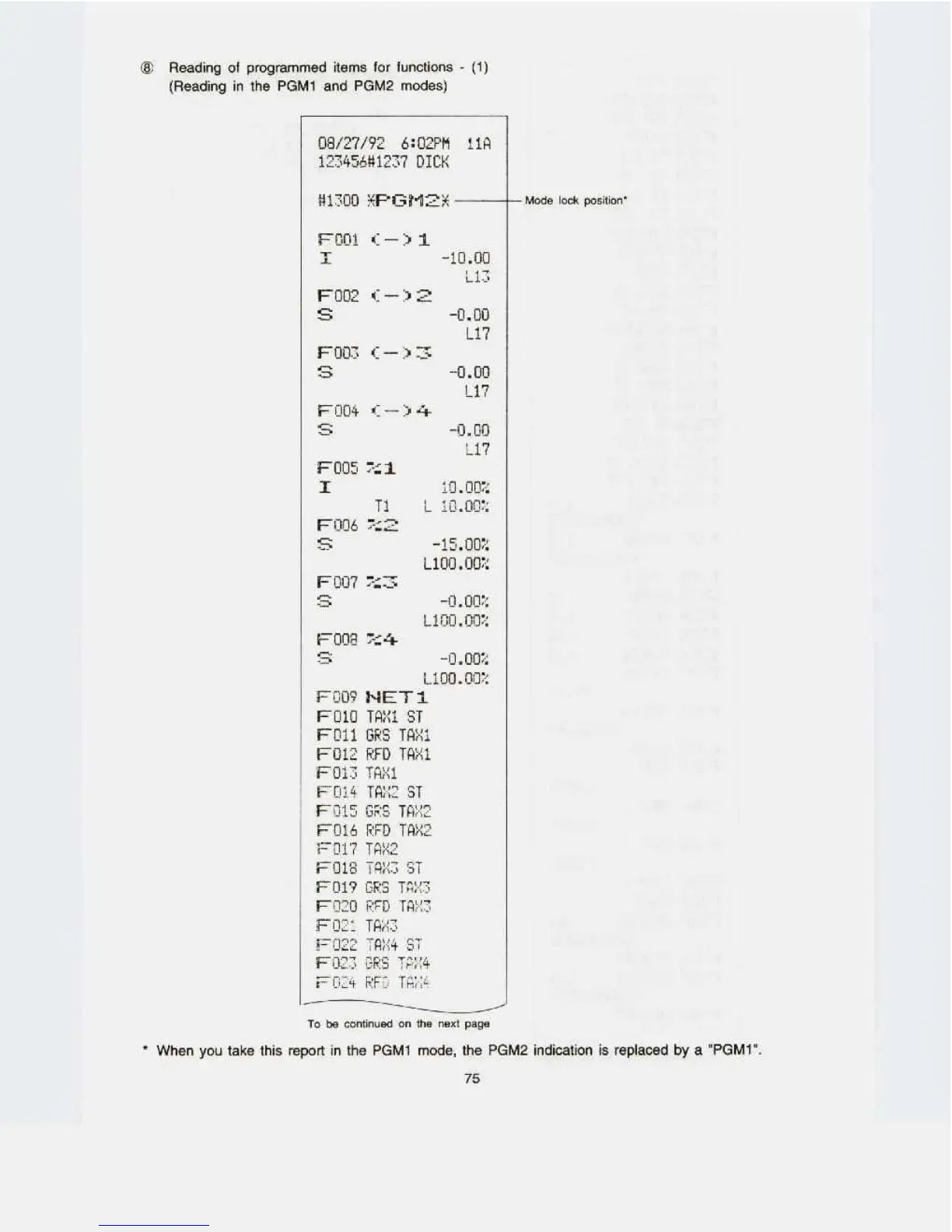 Sharp ER-A550S - (2) Sample printouts; Reading of programmed items for functions - (1) (Reading in the PGM1 and PGM2 modes)
