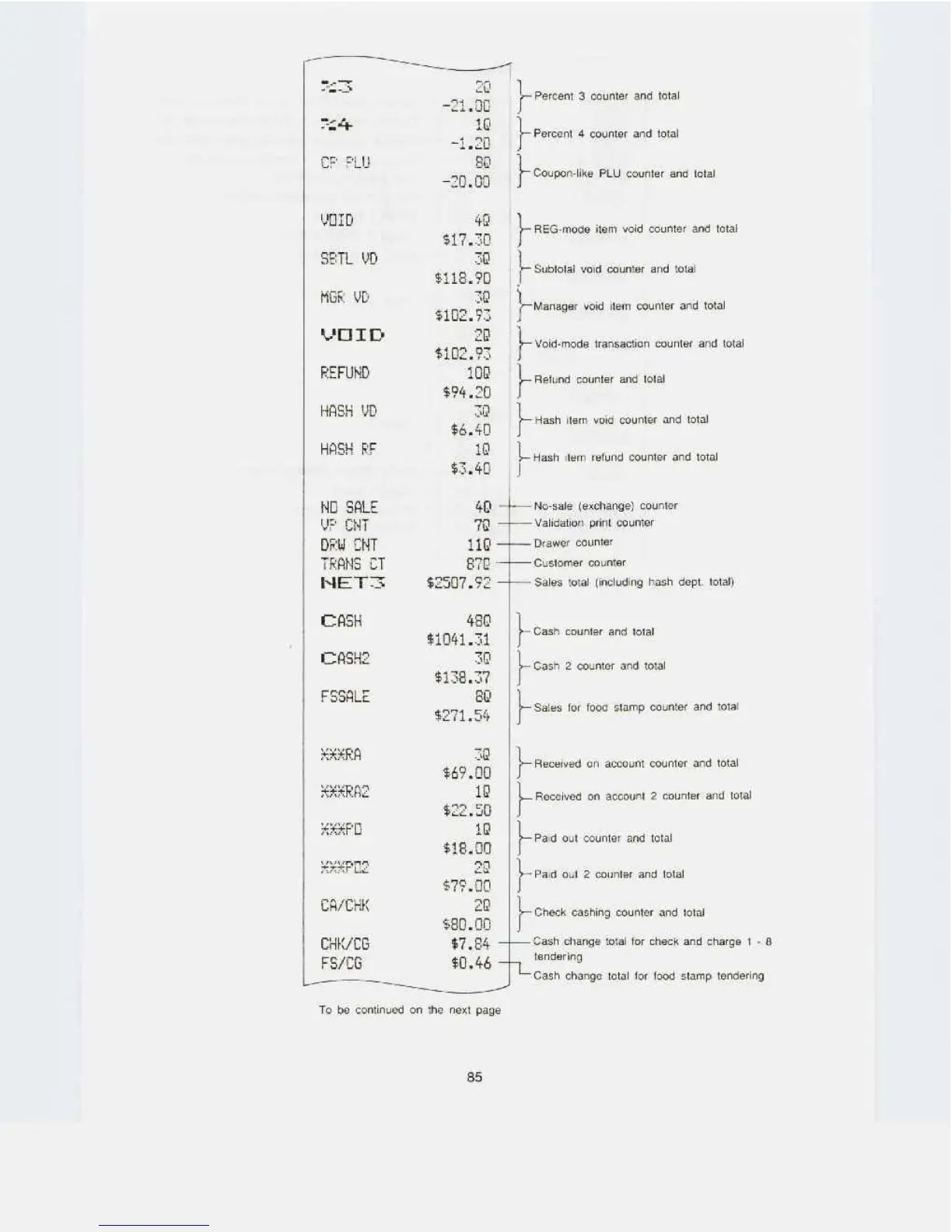 Sharp ER-A550S - 7. Reading and resetting of sales information for a range of PLUS;subdepartments; Sample X report