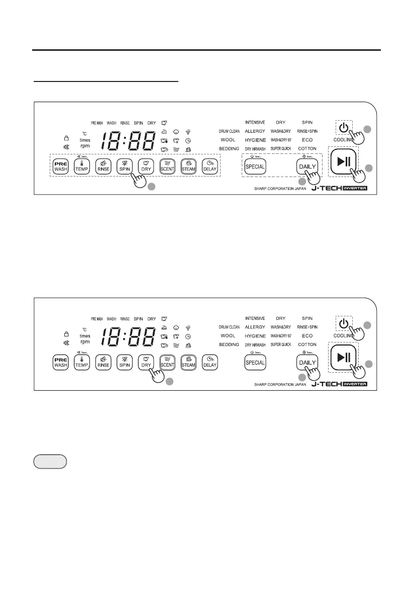 3. Set options (DRY, TEMP., etc.) as necessary. Available options differ depending