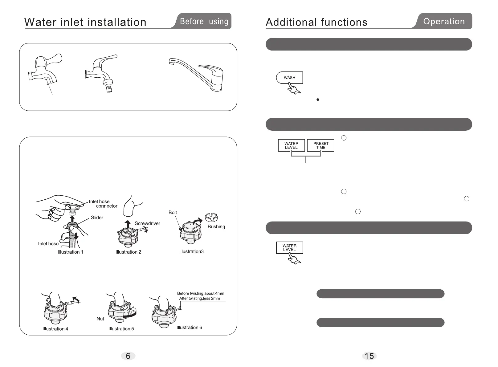 set the inlet hose connector in the tap, see illustration 2.(if the tap caliber is too large and