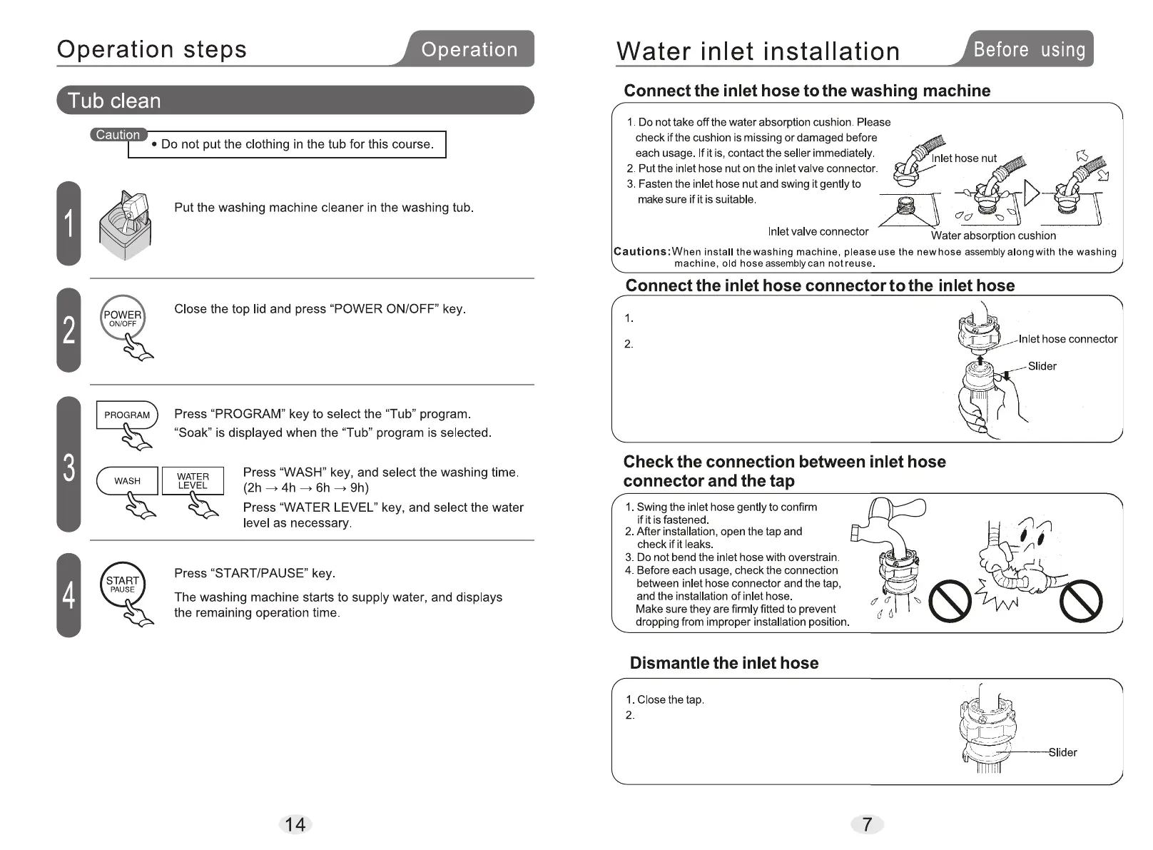 Put the slider down and insert the inlet hose into