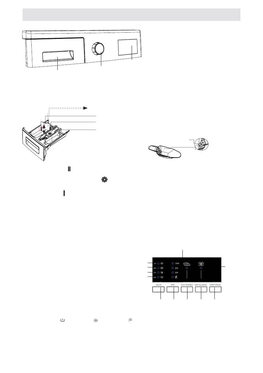 Pääpesuainelokero: Tässä lokerossa voi käyttää vain pesuaineita (neste tai jauhe), kalkinestoaineita ja