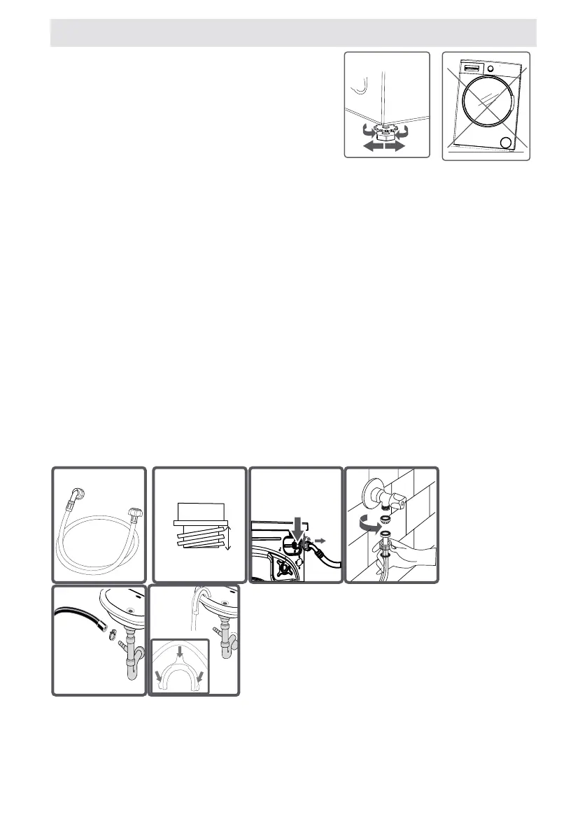 Vaš pralni stroj ima lahko en dovod (hladno) ali dva (hladno/vroče), odvisno od specikacij. Cev z belim čepom