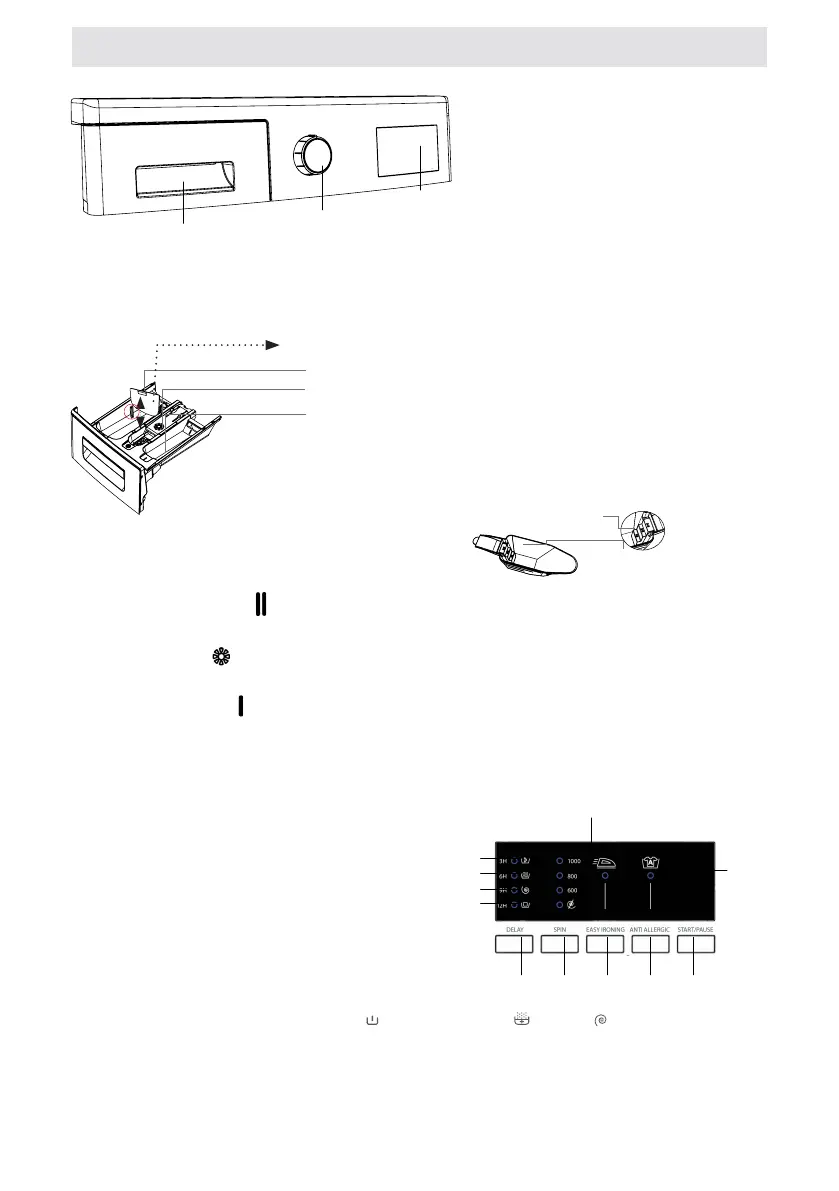 Přihrádka pro předpírku: Tuto část naplňte pouze v případě, že byla vybrána funkce předpírky. Doporučujeme