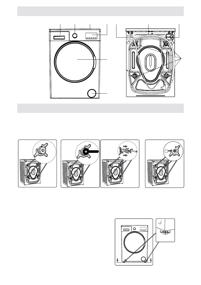 • Ravnost perilice podešava se pomoću zakretne nožice.