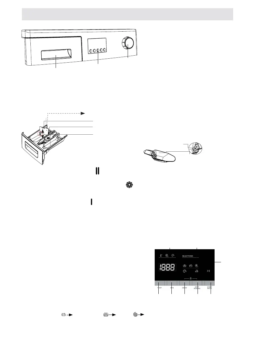 Pre-wash detergent compartment: This compartment must only be used when the pre-wash feature is selected.